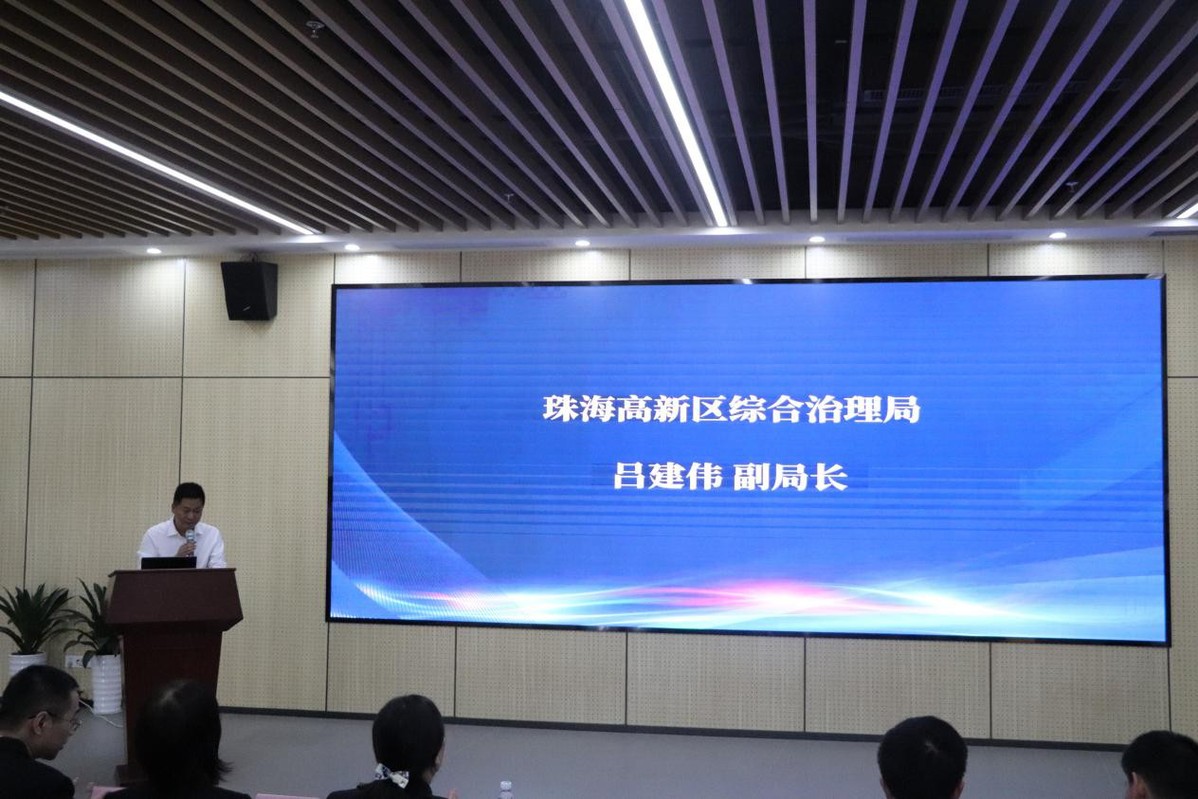 仪式上,珠海高新区综合治理局副局长吕建伟致辞,他对珠海高新区知识产权法律援助中心的成立表示热烈祝贺,表示援助中心的成立不仅能更全面更快捷地向市场主体提供知识产权咨询和援助服务,还开辟了知识产权纠纷解决新渠道,进一步完善了珠海市知识产权维权援助体系。