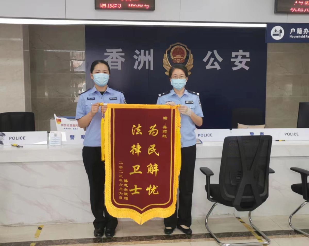 近日,17岁的小宇(化名)生日当天,特意和父亲为香洲区明珠公安业务大厅送来一面绣有“为民解忧,法律卫士”的锦旗,以感谢香洲户籍民警莫莉红“千里亲情一线牵”,找到小伙子的生母,解决了困扰小伙子长达17年的“黑户”问题。