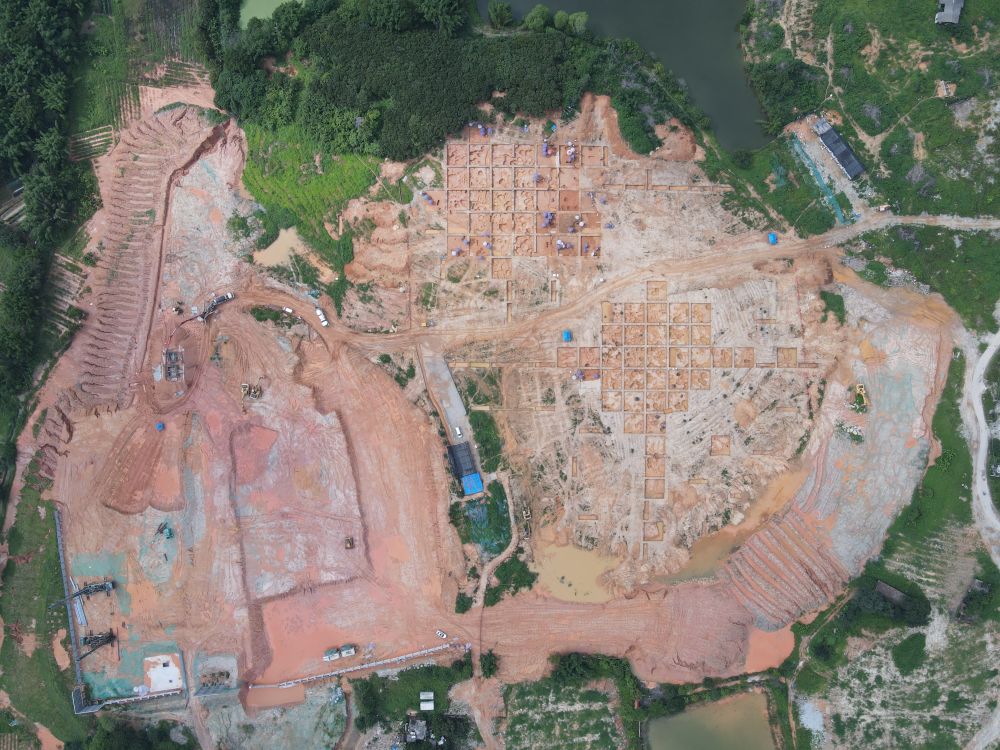 2022年5月至2023年6月,广州市文物考古研究院对竹园岭遗址展开了持续三期的考古发掘工作,共发现商时期形状大小不同的各类灰坑近1500个,其中部分形制规整、深度超过1米的灰坑应属储藏性质的窖穴或祭祀用途的祭祀坑;大小深浅不一的柱洞1800余个,其中相当一部分与干栏式建筑有关;还有长度不等、深浅不一的灰沟25条,推测与先民们生产生活中的自然或人工给排水有关。