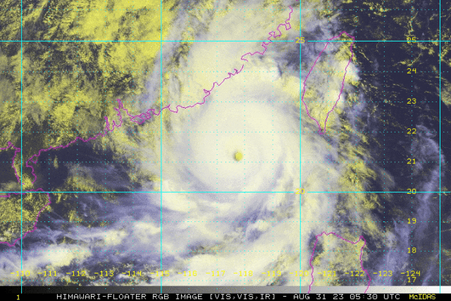 8月31日23时,“苏拉”中心位于距离珠海东南偏东方约375公里的南海海面上(北纬21.5度,东经117.1度),中心附近最大风力16级(55米/秒)。预计其将以10公里左右的时速向西北方向移动,强度变化不大。