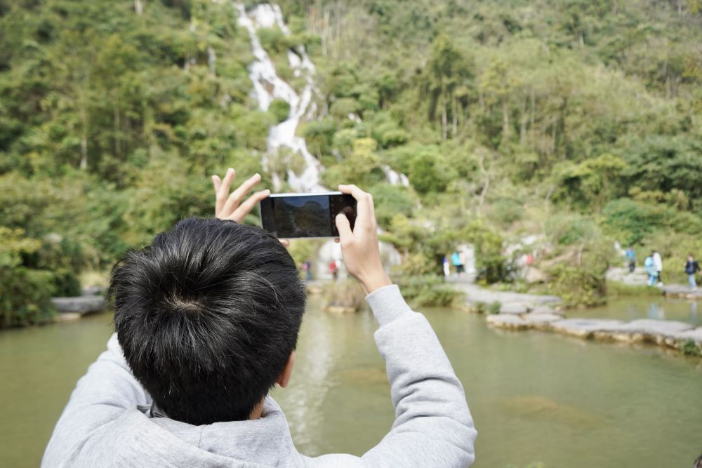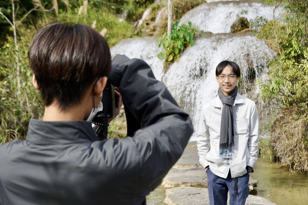 手持相机,香港学生何彦羲不停地拍下沿途美丽的风光。透过镜头,独特的拍摄视角、用心的摄影构图无不透露着他对贵州自然山水的喜爱。
