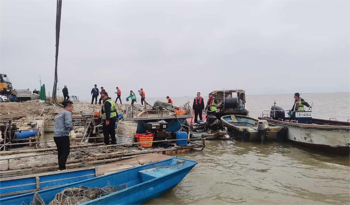 行动期间,陆上由公安、打私等执法人员进行警戒,防止群体性事件;水上由金湾大队带领执法人员在关键水域安排执法艇设卡拦截,将发现的“三无”船舶转移到起吊点,有力保证了行动效果。