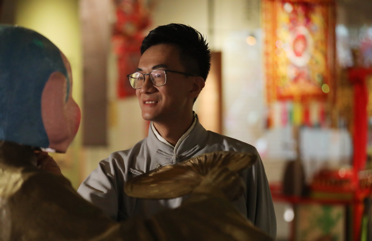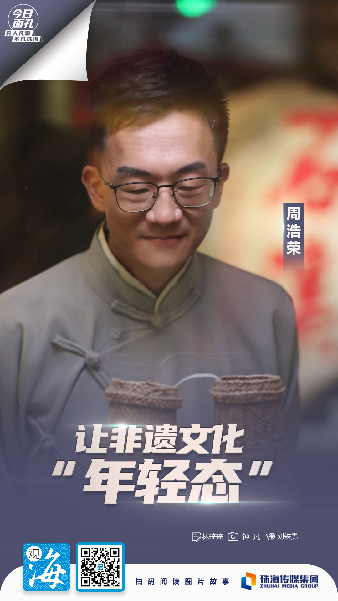 周浩荣看着这些非遗展示入了神,时不时陷入沉思。事实上,这些都是他的“老朋友”了。他是一名热衷于珠海非遗文化传播的90后青年,不断挖掘和记录非遗文化记忆。在他的镜头下,古老的非遗和新时代产生了共振,重焕光彩。