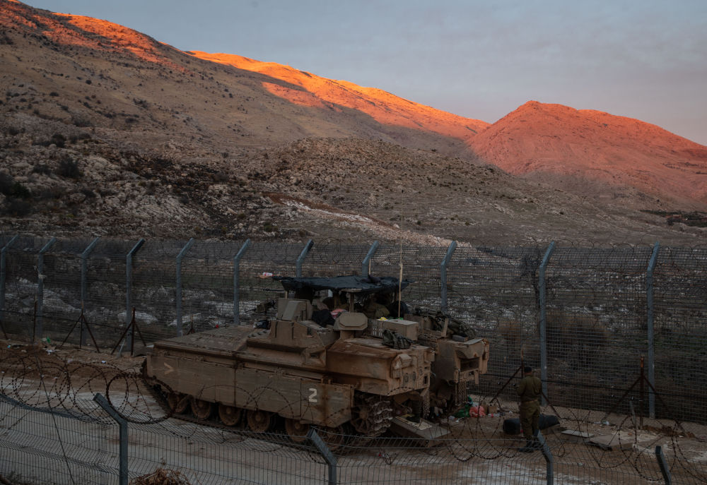12月10日,以军部队被部署在戈兰高地东侧的军事缓冲区围栏附近。新华社记者 陈君清 摄