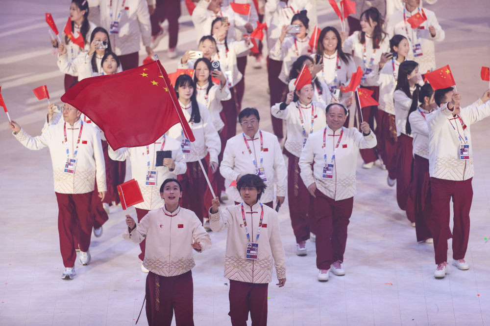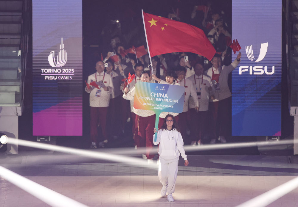 赛会开幕式于当晚在都灵奥林匹克体育馆举行。入场仪式上,来自北京体育大学的女子冰壶运动员裴君杭和北方工业大学的男子高山滑雪运动员刘祥琪共同担任中国代表团旗手。