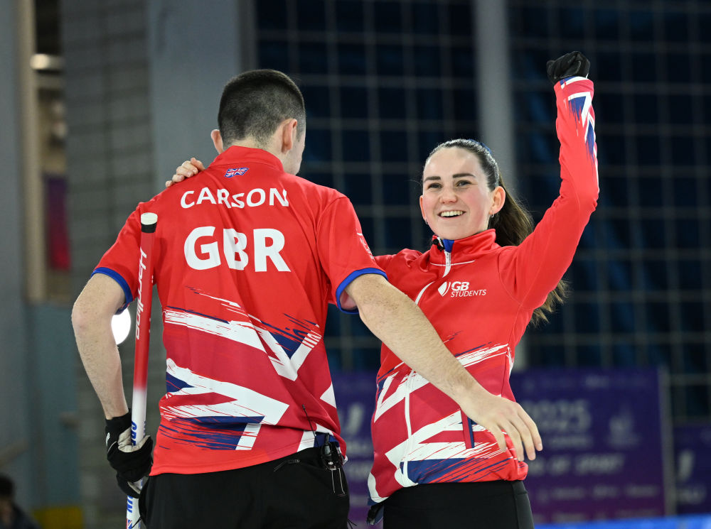 冰壶混双项目是本届大冬会首次设立的比赛项目,吸引了来自8个代表团的队伍参赛。决赛在英国队和德国队之间展开。英国组合芒罗和卡森表现出色,以10:8战胜德国队,夺得历史首金。