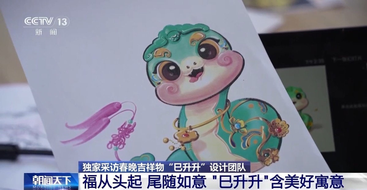 今年春晚的吉祥物形象“巳升升”,一亮相就收获许多观众的喜爱,它憨态可掬的外表既蕴含满满的中式美好寓意,又暗藏很多创新巧思。