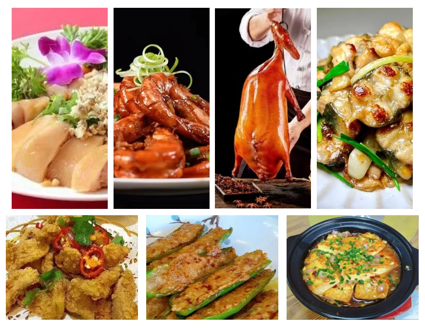鸿运炭火烧鹅、山水鸳鸯酿豆腐