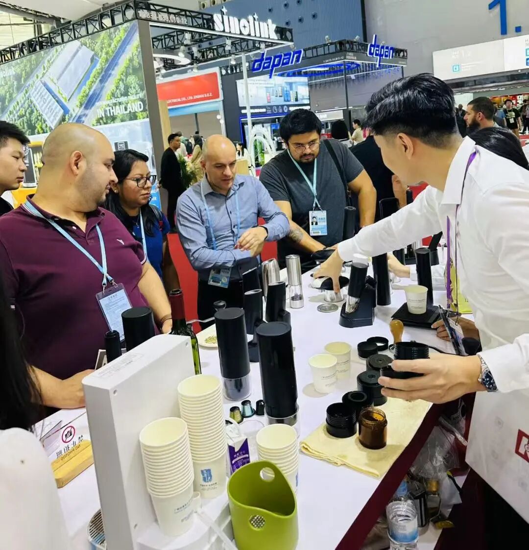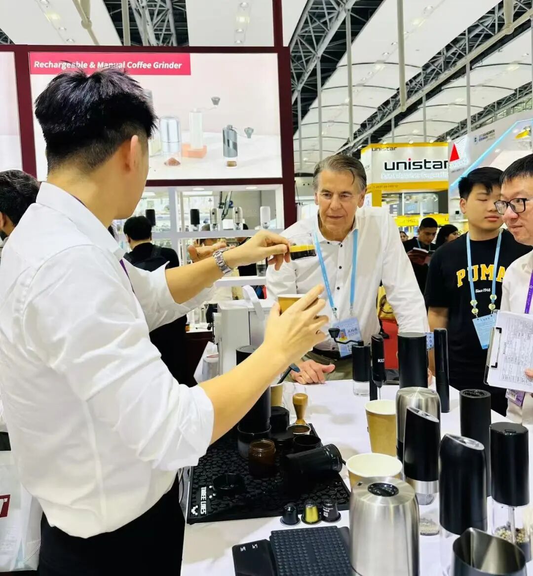 从红酒器具“单打冠军”到咖啡赛道“新势力”,这家扎根红旗镇27年的企业,正以“微创新+场景化”策略拓展全球版图。其展位内电动开瓶器、真空保鲜酒塞等传统优势产品,与新品咖啡机构建的“餐饮娱乐生态”,吸引多国采购商频频询价。正如德国老客户舒尔茨所言:“科力通总能精准捕捉不同市场的细微需求,这正是中国智造的魅力。”