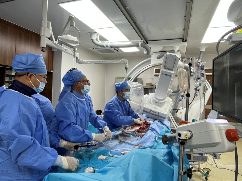 面对患者心脏结构复杂、血管条件差等难题,团队经周密评估制定经皮主动脉瓣植入手术(TAVR)方案,并采用国产球扩瓣联合可调弯输送系统,精准植入TAV23瓣膜。“国产系统的特殊设计能更好适应复杂解剖结构,降低并发症风险。”广东省中医院珠海医院心血管内科主任刘培中表示。据了解,此前国内临床使用的同类球扩瓣长期依赖进口,该类型国产球扩瓣于2024年通过国家药品监督管理局审批并逐步投入临床使用。