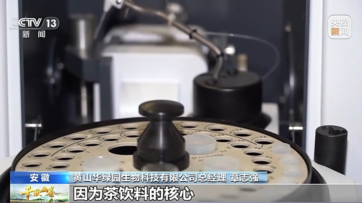 黄山华绿园生物科技有限公司总经理章志强:这个实验室是一个工业新茶饮绿色制造的省级重点实验室。因为茶饮料的核心是前端的精深加工,比如说做成浓缩液或者速溶粉,像手机中的芯片一样。