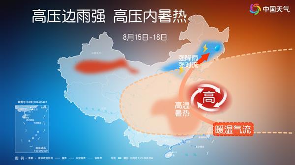 在副热带高压边缘的华南、西南地区东部以及副高北侧的华北、东北等地则是多降雨,但不下雨的时候也会比较闷热。