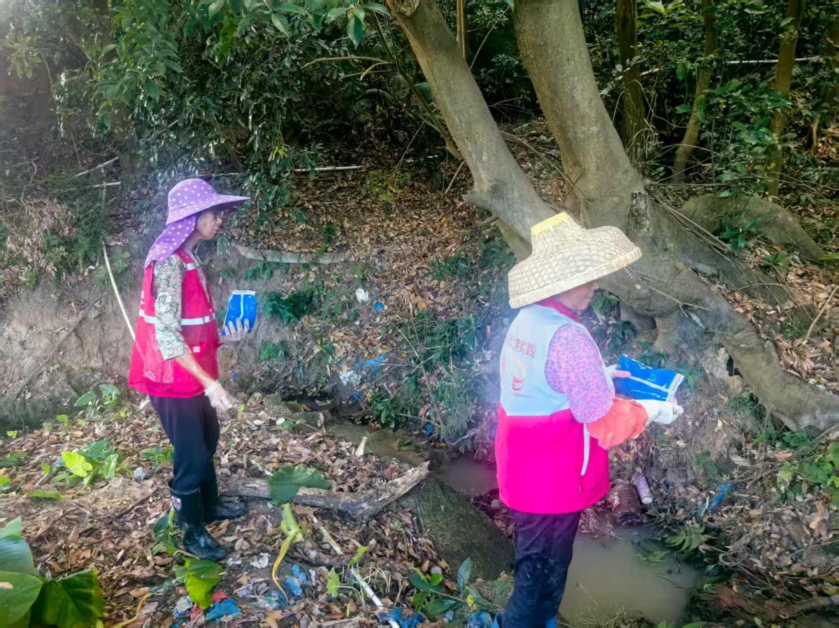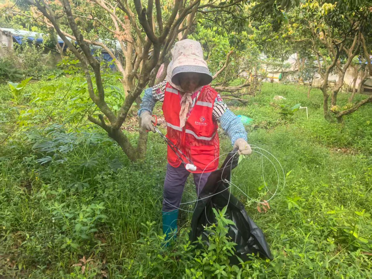 理论刚“结业”,实践战场的号角就吹响了。高栏村龙尾一带的路边、河沟旁,瞬间活跃起这群“银发身影”:手持镰刀的志愿者们弓着腰,对着齐腰的杂草“下手”,刀起草落间,蚊虫藏身的“绿帐篷”被层层剥离;志愿者们则化身“细节控”,蹲在角落捡拾塑料袋、破瓷碗,连石缝里的烟头都不放过。