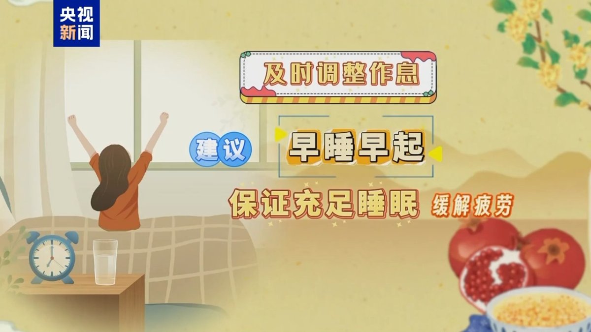 这个时候,要及时调整作息,建议早睡早起,保证充足睡眠,缓解疲劳。