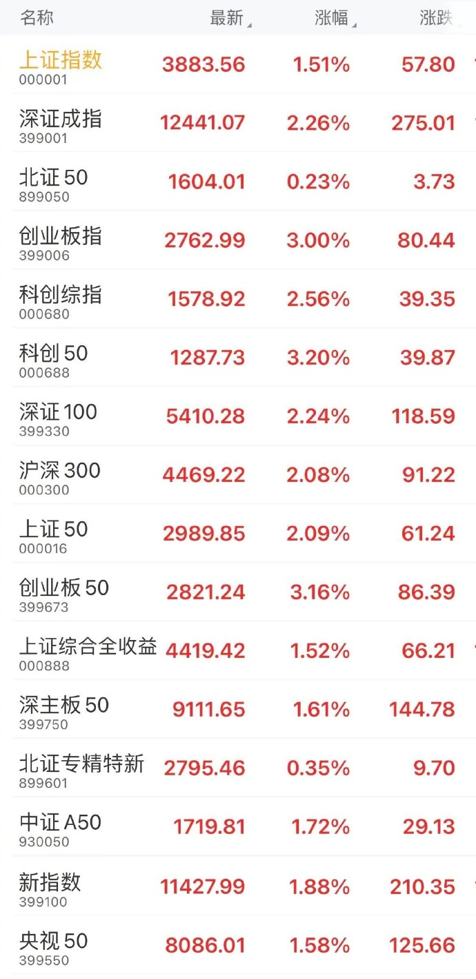 A股收评:三大指数集体上涨,沪深两市成交额突破3万亿