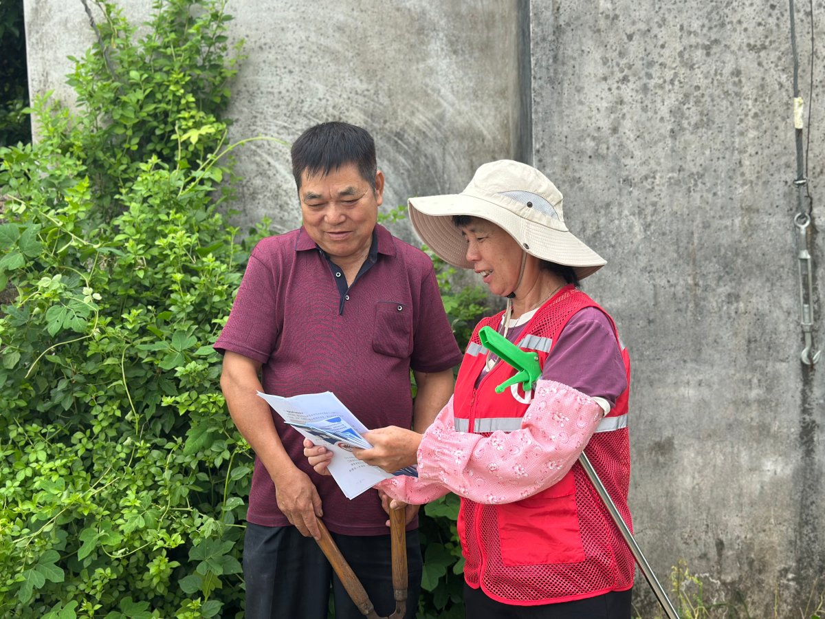 除了和志愿者们一起逐户排查房前屋后,陈碧还走进田间地头,清理菜园、废弃轮胎、建筑废料、垃圾堆放点等蚊虫孳生区,耐心地向群众普及“翻盆倒罐清积水”等防疫知识。她不仅自己积极参与,还热情发动周边居民加入到社区的志愿服务中。