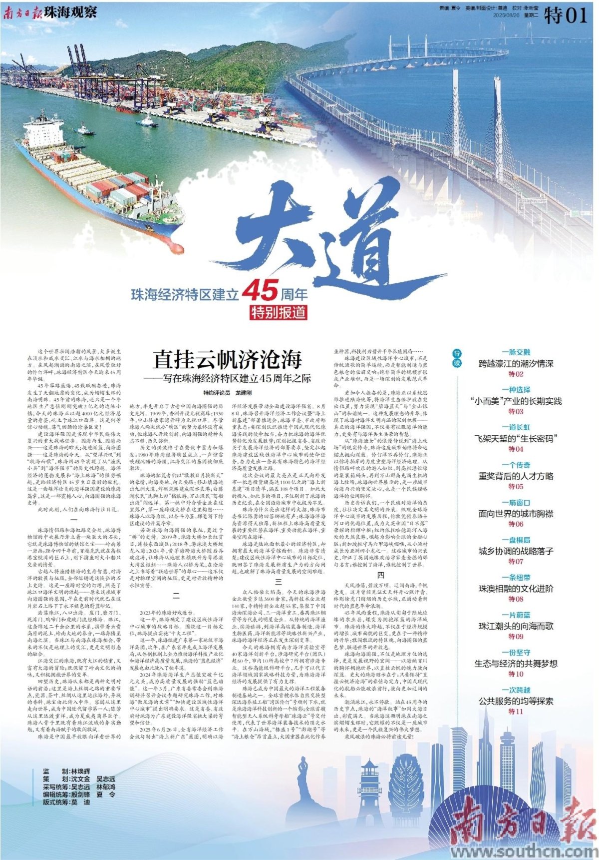 潮涌珠江,永不停歇。站在45周年的历史节点,珠海的“海洋叙事”如同大海日出、彩霞满天。当珠海这颗明珠在南海之滨熠熠生辉时,它照耀的不仅是一座城市的未来,更是一个民族复兴的伟大梦想。