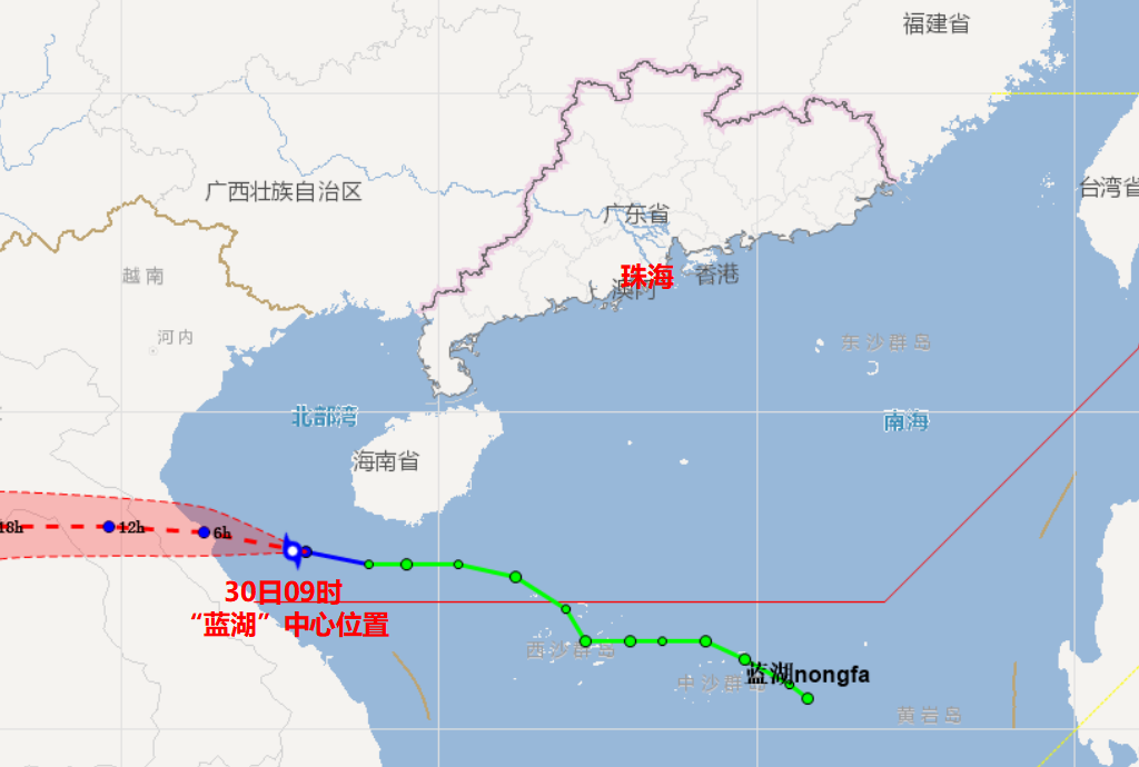 30日10时,珠海市气象台发布台风“蓝湖”生成及天气研判消息,南海热带低压已于今天08时加强为第14号台风“蓝湖”(热带风暴级),目前位于我市西南方约790公里的海面上,预计其将继续向西偏北方向移动趋向越南。