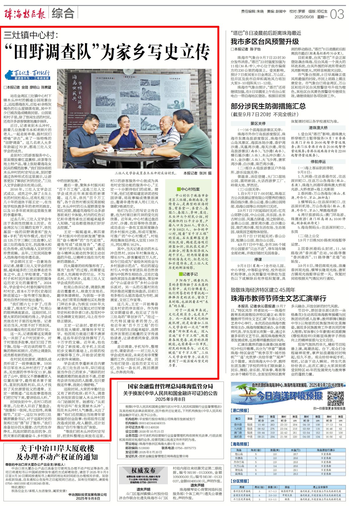 这几天,王定一开始筹备这本村史的序言部分。作为特区早期建设者,他见证了当年三灶岛的“草创岁月”。“经过一代代特区建设者的努力,还有近年来‘百千万工程’的引领,村民的生活越来越好,我想在序言里把正能量的文字传递给读者,让读者感同身受,获得力量。”