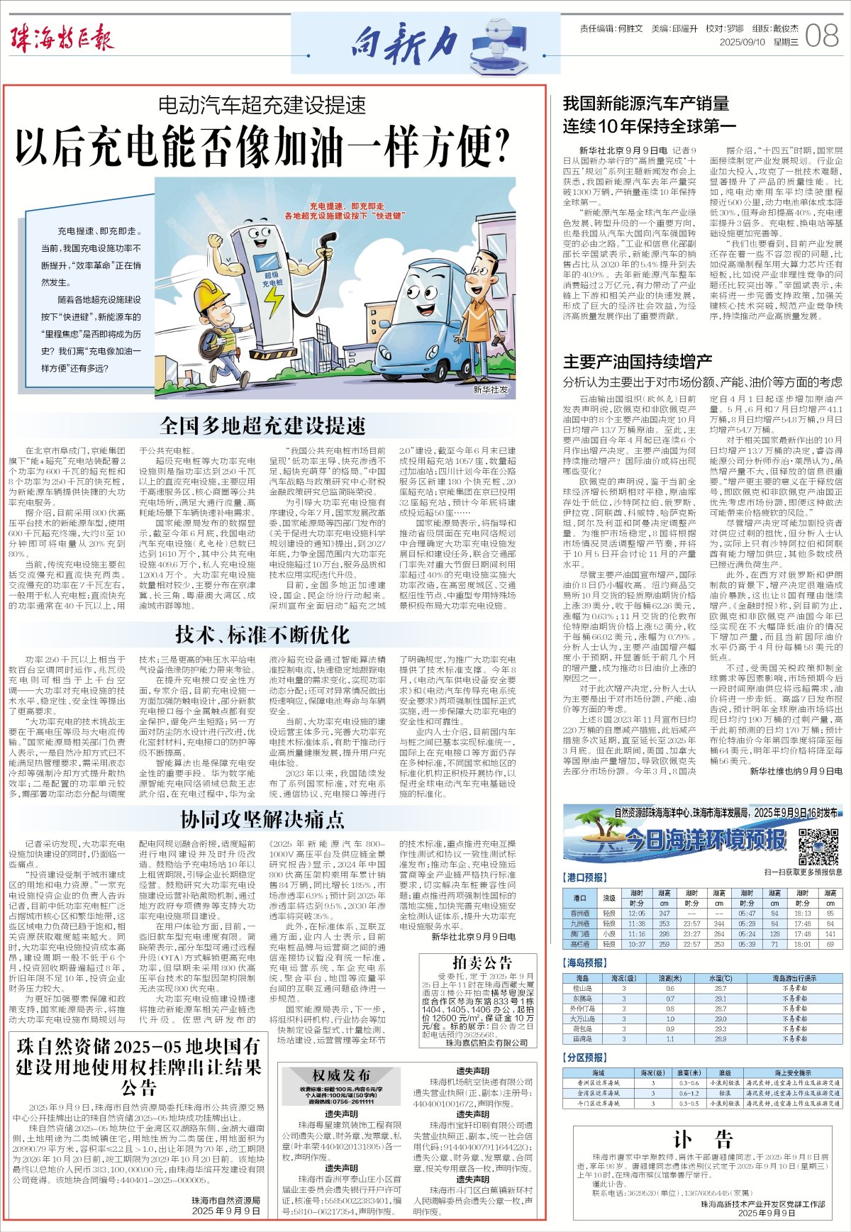 为引导大功率充电设施有序建设,今年7月,国家发展改革委、国家能源局等四部门发布的《关于促进大功率充电设施科学规划建设的通知》提出,到2027年底,力争全国范围内大功率充电设施超过10万台,服务品质和技术应用实现迭代升级。