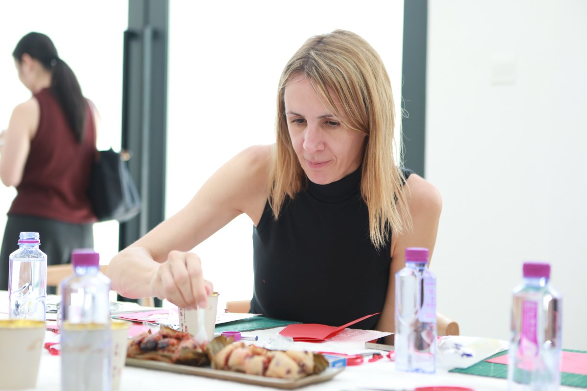 最让记者们流连忘返的,当属品尝非遗美食三灶红蓝裹粽。这里的红蓝裹粽是市级非遗定家湾茶果中的一大特色,口感层次丰富,令人回味无穷,让记者们大饱口福,赞不绝口。“我尝试了不加糖的版本和加糖的版本,两种味道都非常好,这是我第一次尝试吃这种美食,我很喜欢。”来自斯洛文尼亚《劳动报》记者安娅·因蒂哈尔说道。