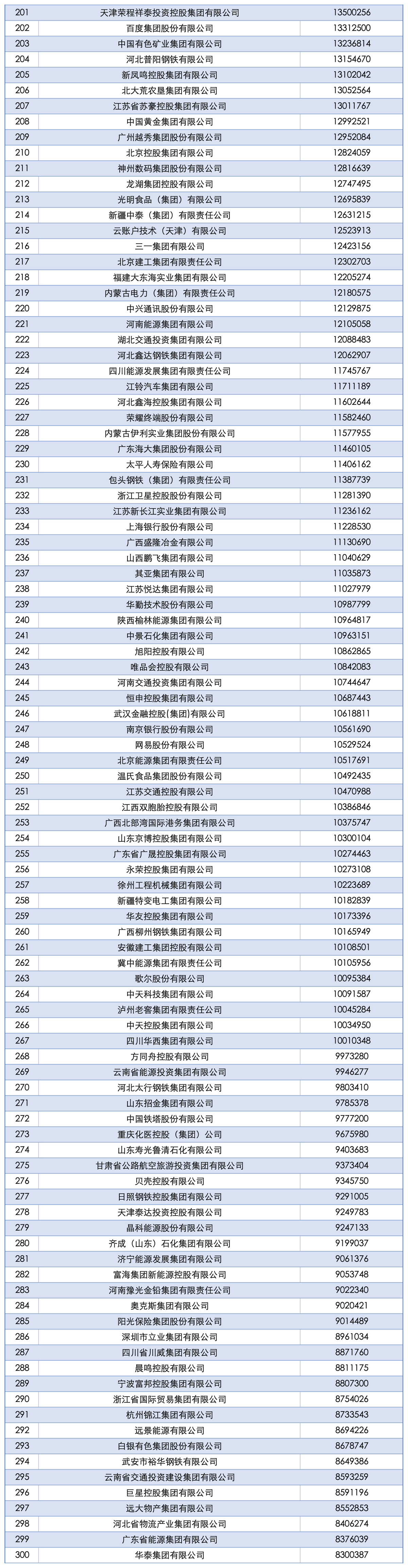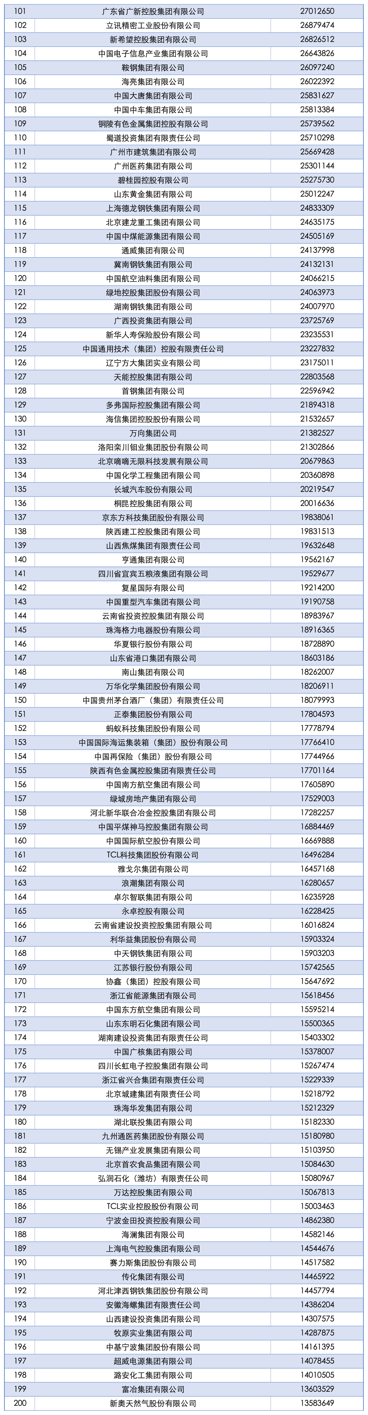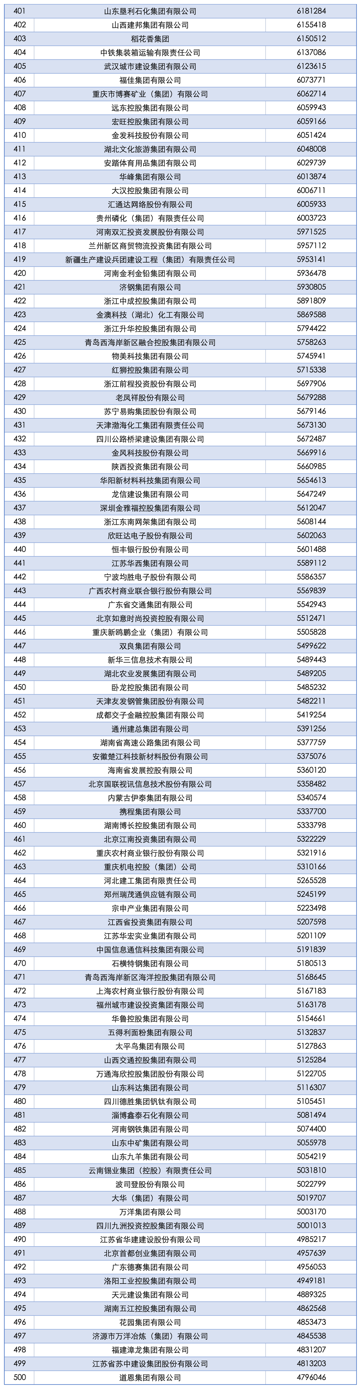 规模总量保持增长。企业500强营业收入达110.15万亿元,较上年500强有所增加。入围门槛实现23连升,达479.60亿元,提升5.79亿元。资产总额为460.85万亿元,增长7.46%。榜单中,千亿规模企业数量增至267家,比上年增加45家,有15家企业的营业收入超过万亿元。其中,国家电网营业收入超过3万亿元,即将突破4万亿元;中国石油、中国石化、中国建筑的营业收入超过2万亿元。