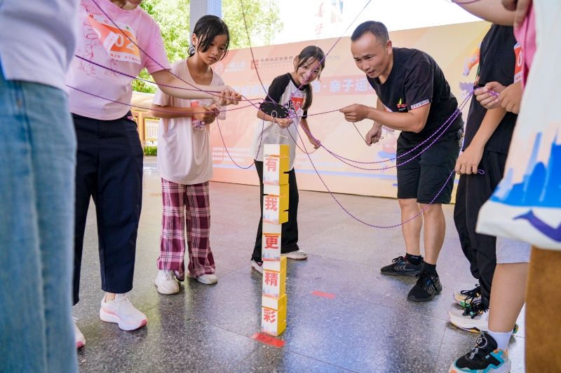 五关六将环节中,每组亲子家庭都展现出彼此的默契,投壶比赛、稳步前行等内容,既让大家享受运动快乐,又让孩子们懂得了团队协作的重要性。家长阿香(化名)表示会把运动方式延续到生活中,“比如每周三傍晚一起去小区跳绳,周末选半天骑车或打羽毛球,让运动变成我和孩子放松又交心的固定时光。”