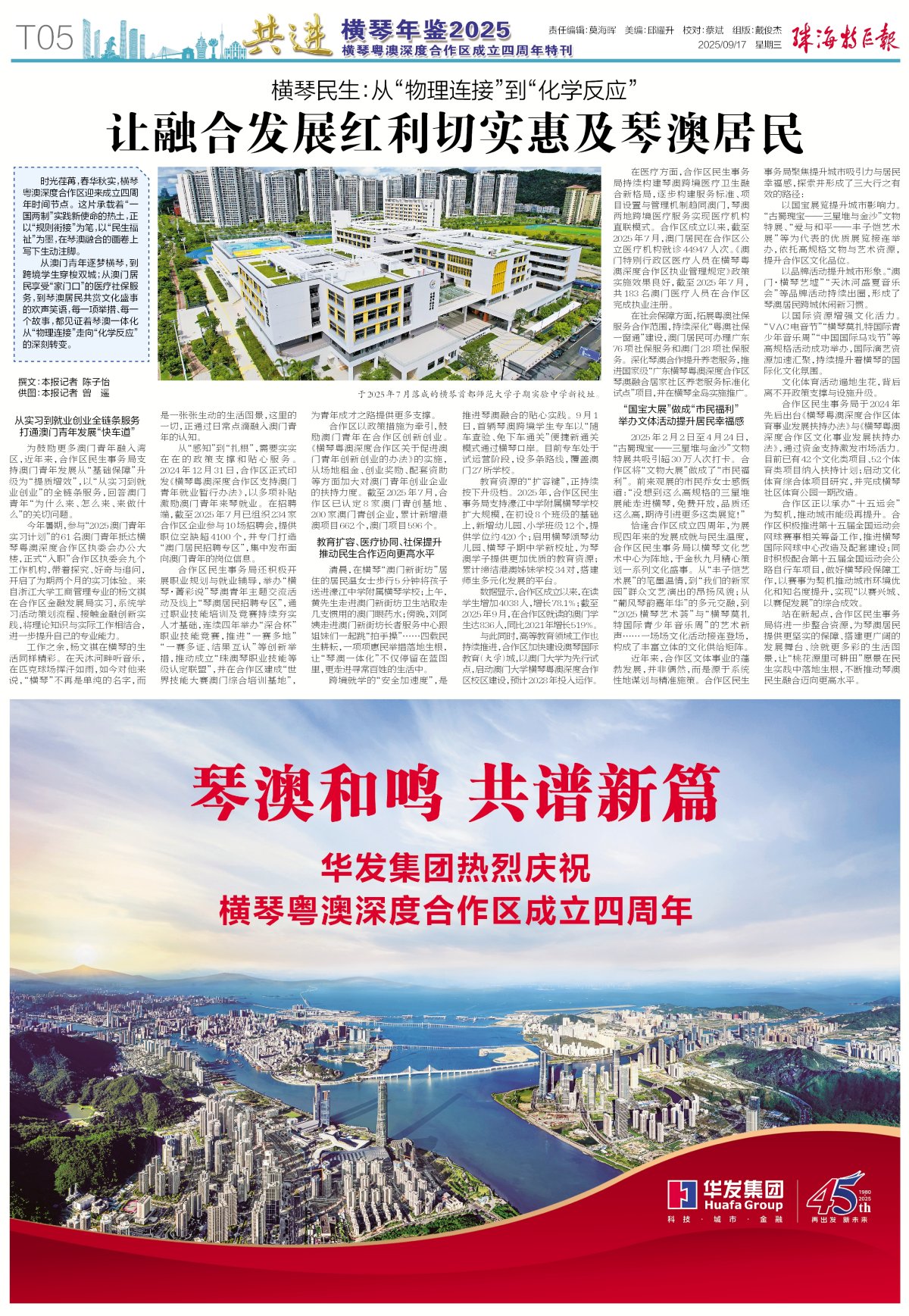 从澳门青年逐梦横琴,到跨境学生穿梭双城;从澳门居民享受“家门口”的医疗社保服务,到琴澳居民共赏文化盛事的欢声笑语,每一项举措、每一个故事,都见证着琴澳一体化从“物理连接”走向“化学反应”的深刻转变。