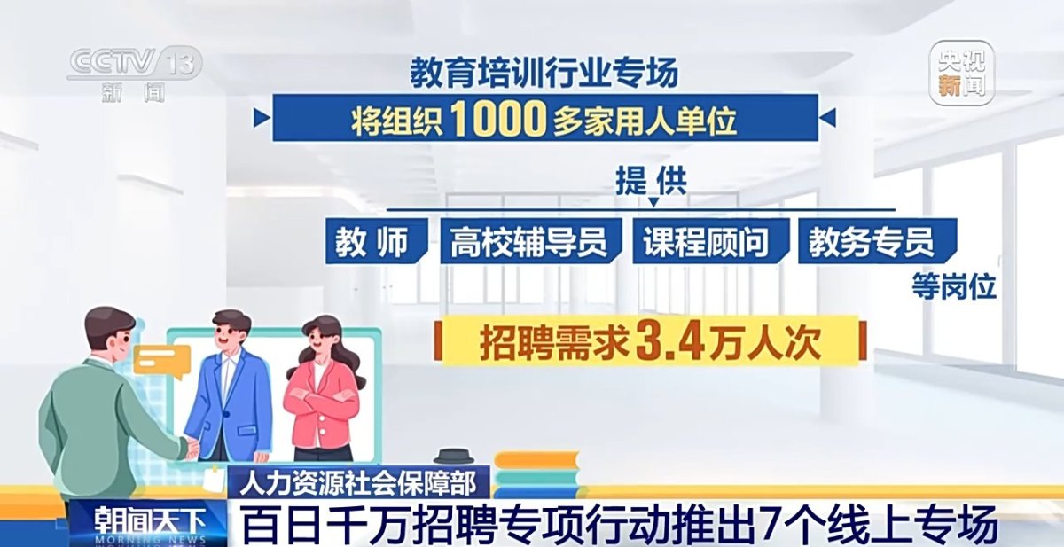 记者从人力资源社会保障部了解到,9月15日至9月20日,百日千万招聘专项行动推出7个线上招聘专场,共有4900多家用人单位参与,招聘需求超13.4万人次。