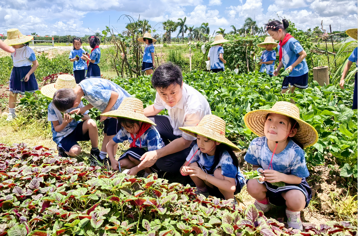 在珠海市金湾区四季学校,一群孩子正蹲在校内的“四季教育农场”里,小心翼翼地为刚发芽的蔬菜浇水。不远处,兔子、鸽子、孔雀等小动物在悠闲地踱步。这座全国首个校家社共建的教育农场,不仅是一片绿地,也是孩子们的自然课堂、生命教育的实景基地,更是学校、家庭、社会三方协同育人的生动实践。