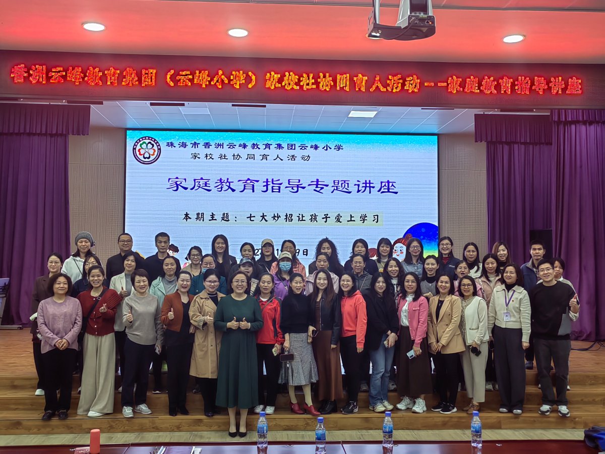 2024年,学校成立“家庭教育指导服务中心”,成为珠海市首批试点单位,率先实施“1+6”工程,构建起一个中心、一套机制、两套课程、三支队伍、四个平台、多个基地及品牌活动的协同育人体系。