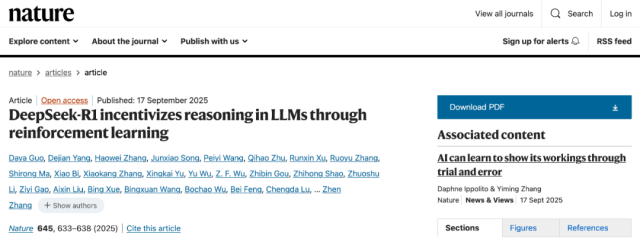 DeepSeek-R1也是全球首个经过同行评审的主流大语言模型。Nature评价道:目前几乎所有主流的大模型都还没有经过独立同行评审,这一空白“终于被DeepSeek打破”。
