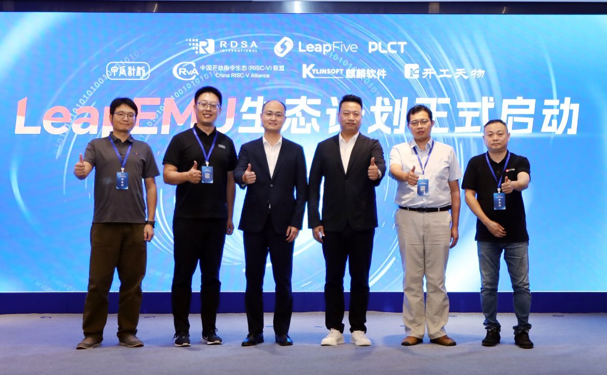 本次研讨会还同步举行LeapEMU生态计划启动仪式。RDSA产业联盟、跃昉科技、中国科学院软件研究所PLCT实验室、甲辰计划、中国开放指令生态(RISC-V)联盟珠海中心、麒麟软件、深圳市开工天物科技有限公司等七家机构的代表共同上台,携手启动生态建设计划,标志着RISC-V软件生态协同发展迈入新阶段。