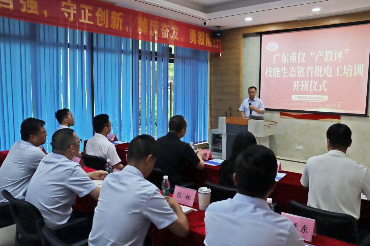 9月19日,广东重仪机械工程服务有限公司(以下简称“广东重仪”)举办“产教评”技能生态链首批电工职业技能等级培训开班仪式。珠海市人力资源和社会保障局职业能力建设科科长周磊、香洲区总工会党组书记兼常务副主席陈林、香洲区总工会党组成员兼副主席陈全添等出席仪式并指导工作。广东重仪公司总经理金璐和高层管理人员、培训讲师及首批学员共同参与活动。