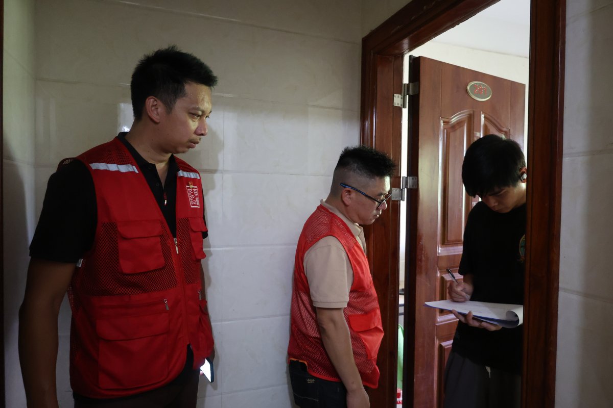 面对持续逼近的超强台风“桦加沙”,斗门区井岸镇南峰社区按照工作要求,对周边村居开展危险区域人员转移工作。22日南峰社区党委书记、居委会主任张华基带领社区工作人员走访,耐心劝导危险区域居民转移到安全场所,并确保在台风来临前完成转移工作。“临险人员共有8户,要求在明天下午全部转移到安全地方;此外,南峰社区在珠峰实验学校设有一个自然灾害应急避难场所,矿泉水、方便面、八宝粥目前都已经备好。”张华基表示。