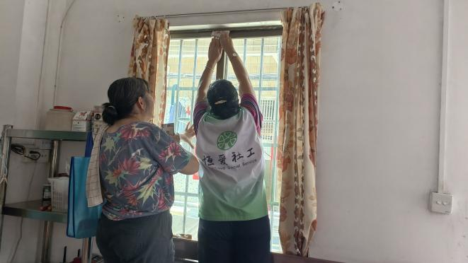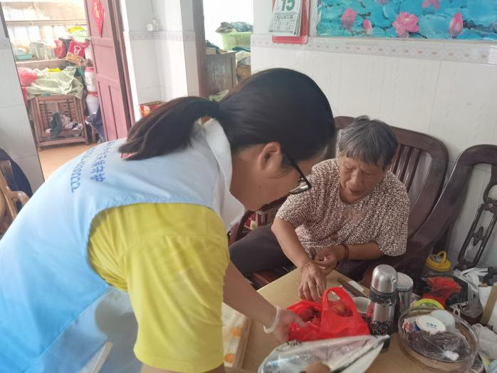 除了线上提醒,“平安通”团队还组织工作人员上门走访,重点对孤寡、独居、失能等长者家庭开展安全隐患排查。他们协助加固门窗、清理排水口、测试设备运行情况,并为部分行动不便的长者储备生活物资。在平沙镇,一位空巢老人家中窗户松动,工作人员及时加固,老人连连表示感谢。