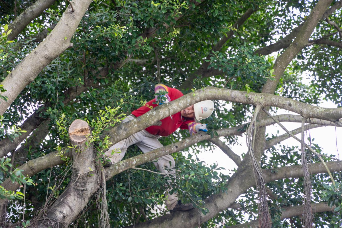 当日上午,在小托村党总支书记、村委会主任梁凤香的带领下,小托村“老更队”分队一大早开展防台风宣传工作。鉴于村党群服务中心旁边村道处的大榕树树枝较长,分队队员爬上大树人工修剪,避免台风期间带来的安全隐患。在汉宸水产养殖场,梁凤香和养殖场负责人沟通,劝离和转移鱼塘看护房临险人员。据养殖场负责人介绍,在台风来临前,养殖的罗氏沼虾已经卖了三分之二,目前看护房人员已经安全转移。