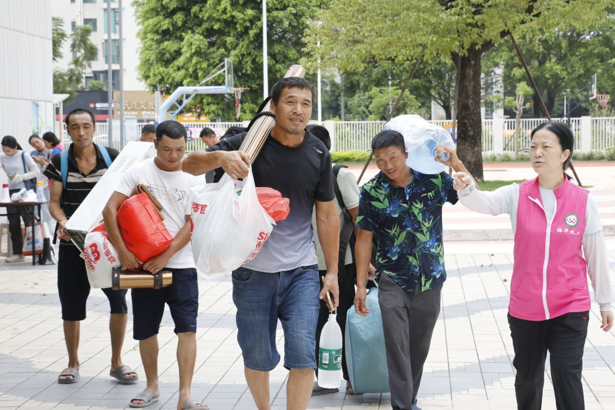 当日上午11时许,记者在珠海市香洲区潮联学校庇护点现场看到,转移现场秩序井然,工人们或手提鼓鼓囊囊的行李袋,或肩扛折叠被褥,里面整齐收纳着换洗衣物、洗漱用品等个人生活物资,以几十人为一批次,在工作人员的指引下自觉排队登记信息,有序走进校园。不少工人刚安顿好行李,便主动拿起扫帚打扫教室角落的浮尘,有的相互搭把手整理堆放的物资,还有人细心地将被褥在指定区域铺展平整。