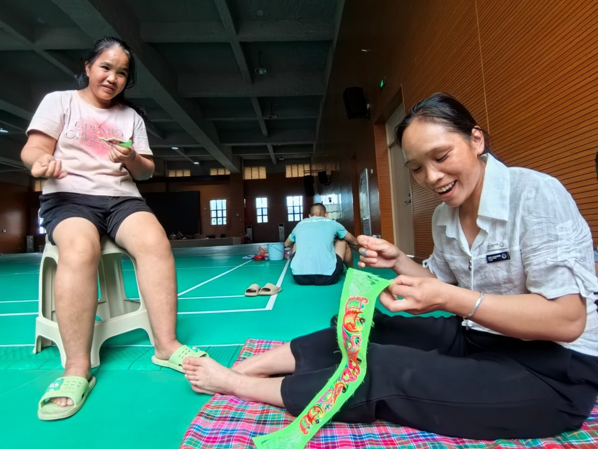 “教室里有空调,环境还挺好的!”“物资看着挺全,不用愁吃饭喝水了!”在工人的简短交流中,温馨又有序的氛围在庇护点内蔓延。来庇护点时,陆女士特意带上给家里孩子准备的刺绣背带,还有一整套缝纫工具箱。背带上的花鸟图案绣得十分别致,她笑着向记者展示手里的背带,这是她花了一个月时间绣出来的,打算趁这次空闲时继续完善。