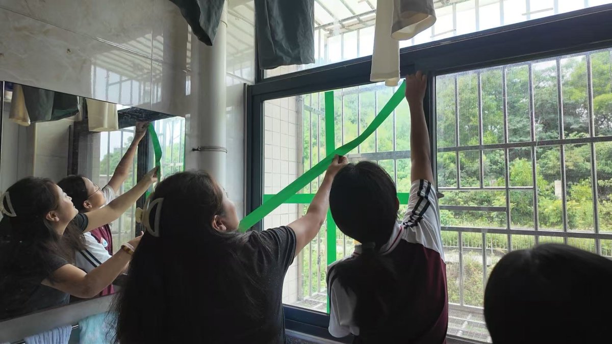 学生丁增欧珠是首次直面台风,他坦言最初的想象确实带着恐惧:“一开始觉得特别恐怖,脑子里全是龙卷风那种画面。”但随着学校一系列细致的防护措施落地,他的心态也逐渐放松,“看到宿舍窗户贴了米字胶带,大家都提前备好的零食,反而觉得很暖心。”