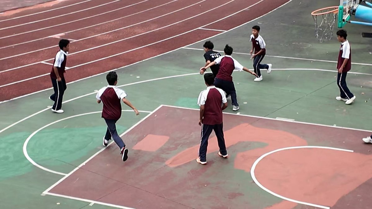 不一会,下课铃响起,藏族班的学生们跑向操场,在阳光下一起运动嬉戏。篮球撞击地面的声音、排球划过空气的弧线、还有爽朗的笑声……这一切几乎让人忘记了台风正在逼近。