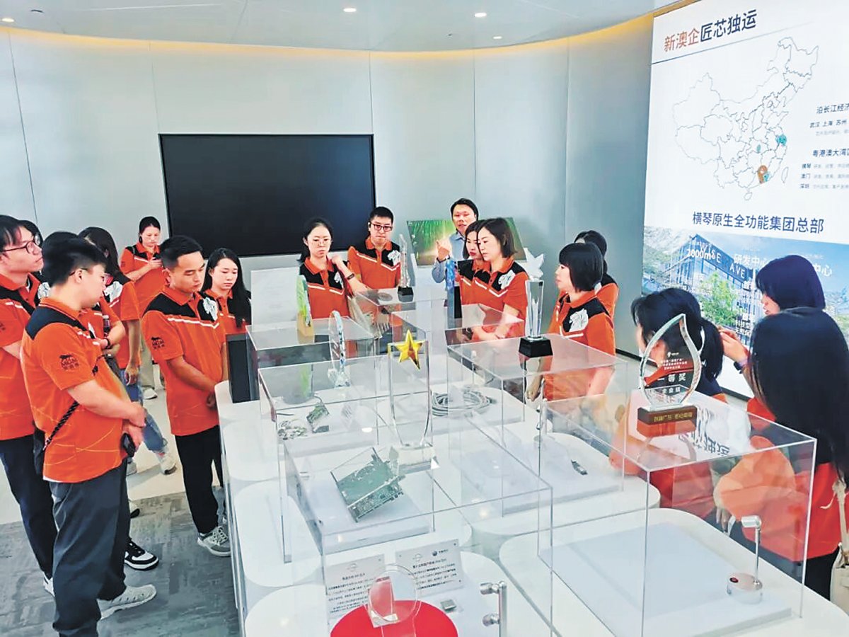 研学团参观合作区规划展览馆,全面了解了横琴战略定位与璀璨前景。在对芯潮流(珠海)科技有限公司、麦得发生物科技股份有限公司的探访中,他们触摸到了集成电路产业和生物科技的跳动脉搏,感受到了自主研发的创造力与成就感。从新家园社区创新方党群驿站的精细化服务,到卡斯国际集团关于“AI+文旅”的前沿讲座,再到琴澳跨境电商产业园的蓬勃朝气,青年们一路看、一路问、一路思考。