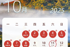 2025年国庆中秋假期即将来临,本周上班、上学时间有变。根据国务院办公厅关于2025年部分节假日安排的通知,国庆节逢中秋节合并放假8天,9月28日(周日)、10月11日(周六)要上班、上学,10月1日(周三)至8日(周三)放假调休。此外,国庆中秋假期(10月1日至10月8日)所有收费公路免征小型客车通行费(含机场高速、收费桥梁和隧道),10月9日0时起恢复正常收费。