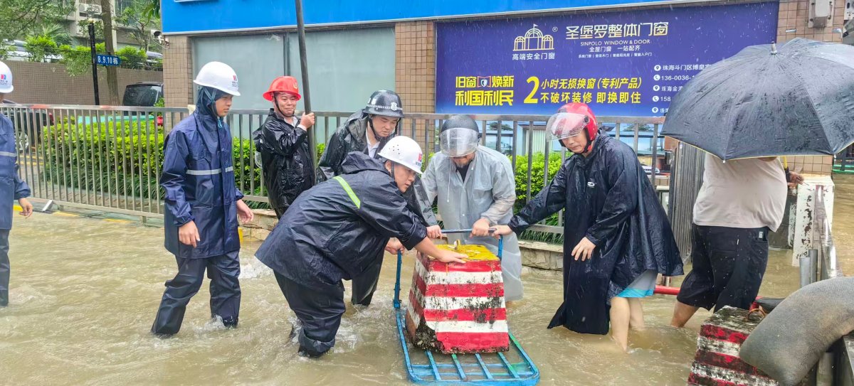 据华发物业相关负责人介绍,台风来临前各项目已开展“拉网式”安全巡查:全面清掏天台排水口、雨水井及主干排水管道,重点检查配电房、水泵房、电梯机房等设备间,同时储备并布设足量防汛沙袋、