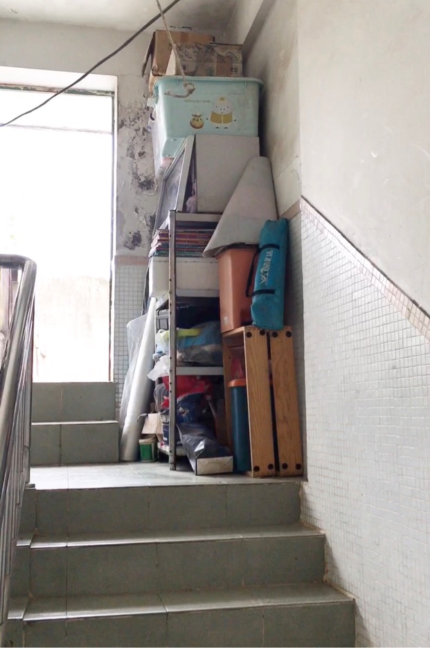 接着,记者又走访了南虹三街一处花园小区。在小区一栋居民楼,记者发现楼梯间通向顶楼的安全门附近,摆放了两排杂物架,上面堆放着书本以及各类生活杂物,留下的空间让人勉强能够通过,在紧急情况下想要快速通往楼顶,仍然存在一定的困难。