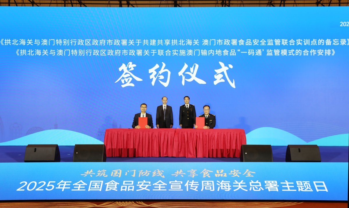 粤港澳三地海关检验检疫部门紧密合作,建立了内地与香港、澳门之间26项食品安全保障协作机制,为全链条监管提供制度保障。本次活动突出粤港澳三地协同联动,在主会场启动仪式上,拱北海关与澳门市政署签署《拱北海关澳门市政署关于联合实施澳门输内地食品“一码通”监管模式的合作安排》《拱北海关与澳门市政署关于共建共享拱北海关澳门市政署食品安全监管联合实训点的备忘录》,标志着内地与澳门食品安全监管合作共治进入新阶段。在企业座谈会上,海关与企业面对面交流,倾听诉求、答疑解惑,推动监管与服务深度融合,助力形成各方参与的食品安全共治格局。