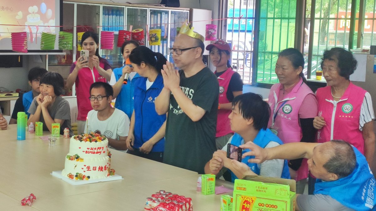 “祝你生日快乐,祝你生日快乐……”上午10时30分,集体生日会温情开启。社工邀请第三季度生日的5名会员上台,全体人员共同唱响生日歌,歌声中满含对寿星的祝福,也承载了人们对中华人民共和国成立76周年华诞的礼赞。在摇曳的烛光下,寿星们闭眼许下心愿,现场众人一同分享生日蛋糕,甜蜜的滋味萦绕在每个人心头。
