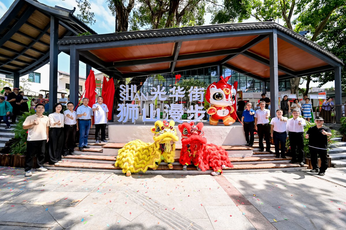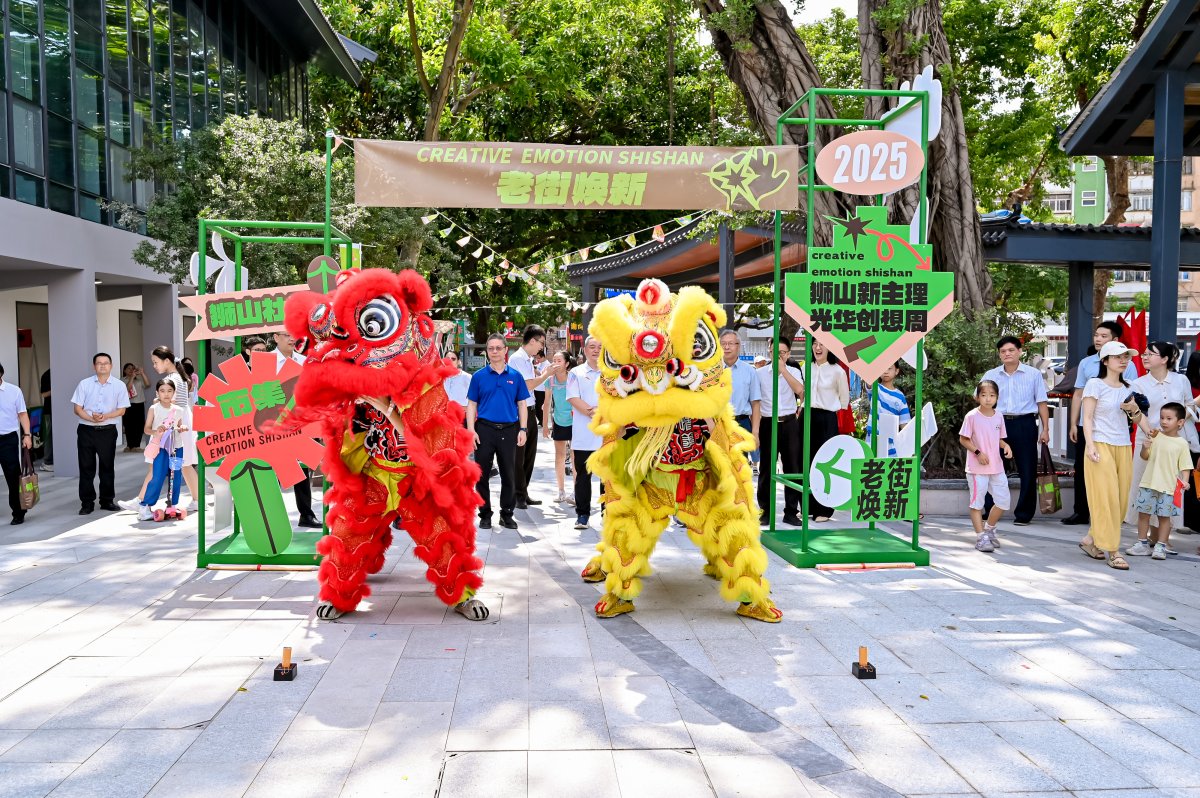 随着街区焕新启幕,街区原创IP“狮山山”的卡通形象装置也随之亮相——它以醒狮为设计灵感,外观色彩明亮,造型灵动活泼,身上还融入了狮山相关文化元素的纹样。作为街区文化新符号,“狮山山”已通过文创产品、美陈装置等形式融入街角巷尾,成为吸引年轻人打卡、传播街区文化的重要载体。
