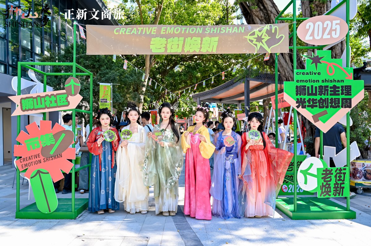 据悉,即日起至10月8日,光华街同步开展“狮山新主理·光华创想周”系列活动。除了热闹的创意市集,10月1日至2日每天下午,汉服表演者还会沿着街区巡游,广袖飘飘的身影与老街的青砖灰瓦相映成趣;1日晚的开幕乐队演出将用旋律点燃氛围,2日的liveshow表演也会继续带来精彩;街区各处还设置了集章打卡点,游客领取专属地图后,可在商户间穿梭打卡,解锁消费优惠的同时,深度探索街巷里的魅力。