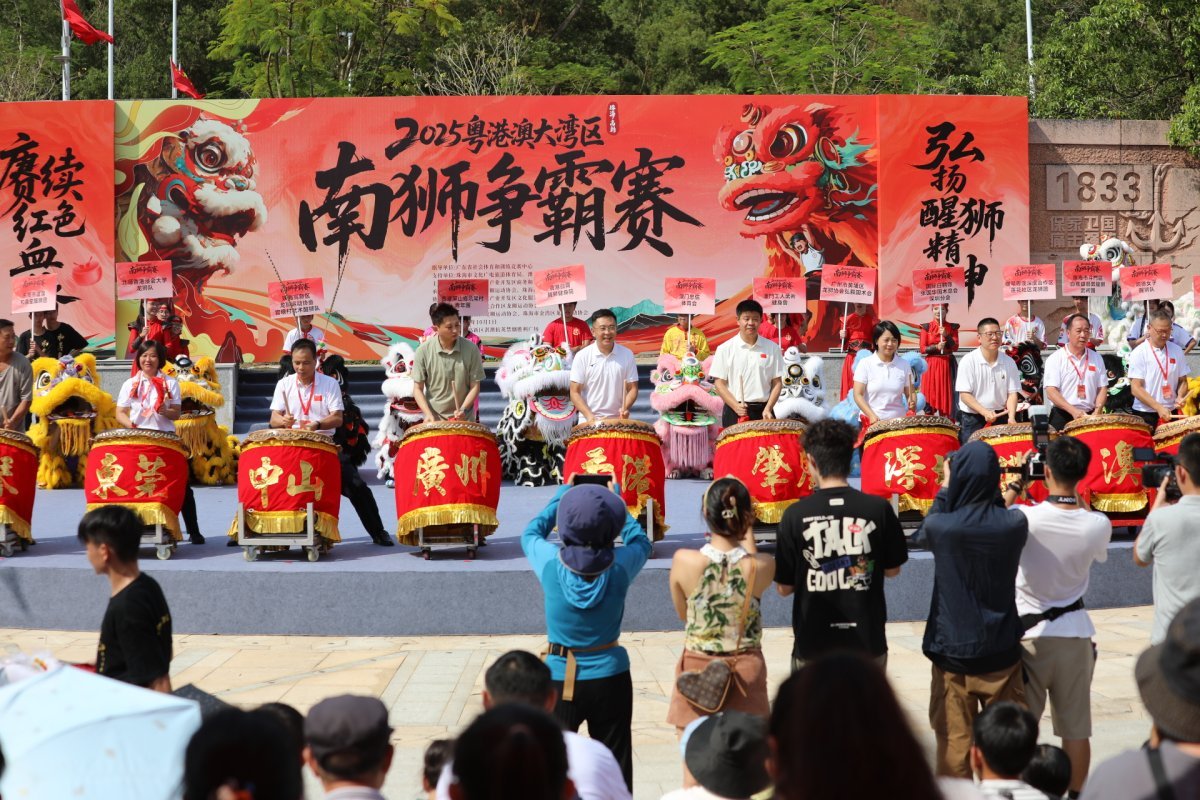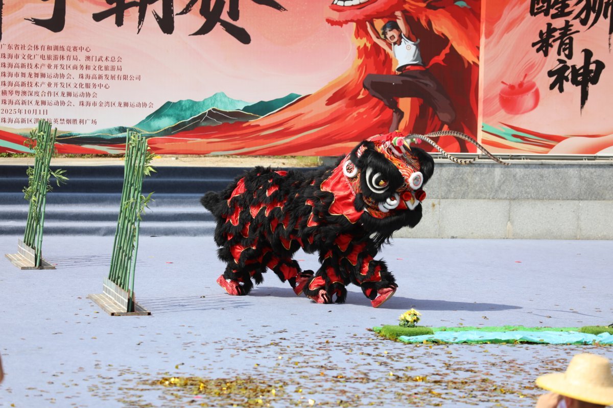 10月1日,国庆佳节,珠海高新区淇澳岛抗英胜利广场上旌旗猎猎,鼓点如潮。来自粤港澳大湾区“9+2”城市群的17支顶尖南狮队伍齐聚于此,在2025年粤港澳大湾区(珠海高新)南狮争霸赛的赛场上展开了一场力与美的巅峰对决,以传统非遗竞技献礼祖国76周年华诞,奏响湾区人文交融的铿锵乐章。